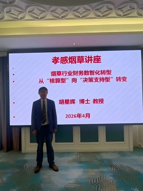 2026年4月24日,湖北省纺织产业发展研究会会长胡星辉教授受邀对湖北省孝感市烟草行业进行数智化转型讲座。数智化背景下,湖北烟草正以数据驱动、业财融合、智能赋能为核心,推动管理会计从传统核算型向价值创造型、战略决策型转型,通过智慧司库、智能预算、成本精益管控、经营分析可视化等体系建设,为企业经营决策、风险防控、资源优化配置提供精准支撑。