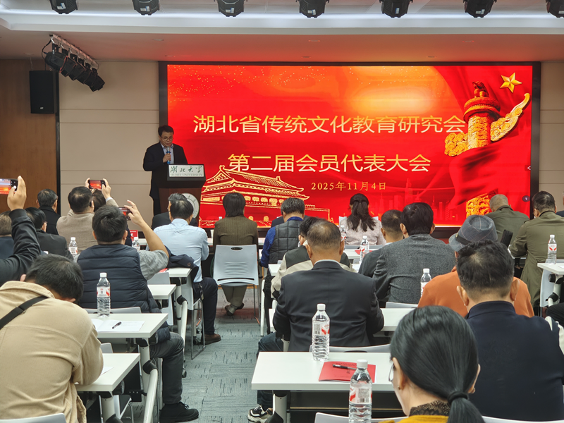 2025年11月4日,湖北省传统文化教育研究会第二届会员代表大会在湖北大学隆重召开。本次大会由研究会副会长兼秘书长陈迪炎主持,会议严格遵循法定程序,圆满完成换届选举,产生新一届理事会及领导机构,并围绕“深化传统文化教育、赋能湖北文化强省建设”开展专题学习。原湖北省人大常委会副主任韩忠学出席会议并讲话,湖北大学相关领导、省民政厅社会组织管理局及省社会科学界联合会负责人,与全省120余名会员代表共同参会。