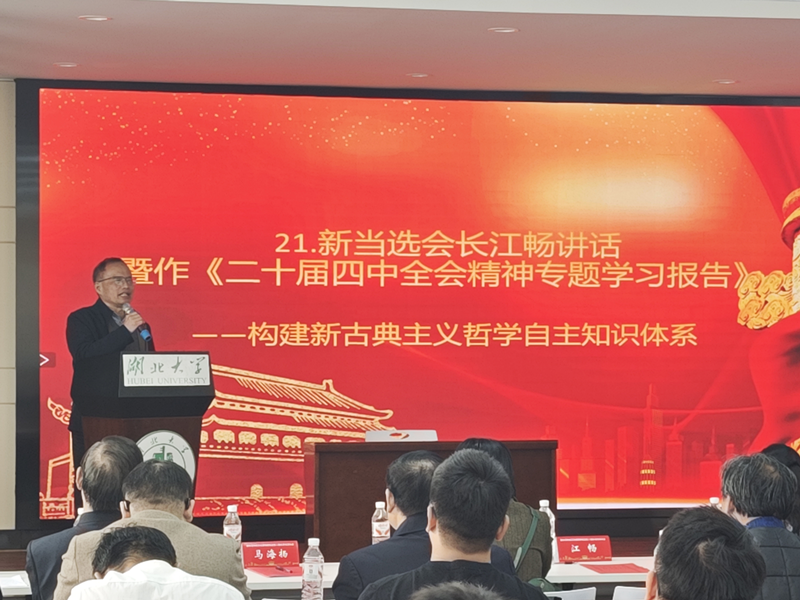 大会以“传承荆楚文脉、创新教育实践”为核心主题,分开幕式、换届选举、专题讲座三个阶段有序推进。开幕式上,全体代表奏唱中华人民共和国国歌,湖北大学领导致辞时指出,研究会作为荆楚传统文化教育研究的核心平台,需持续深化校会合作,为文化传承注入教育动能。省社科联、省民政厅相关负责人分别从规范社会组织建设、强化学术研究引领等角度提出指导意见,多份来自省内外文化机构的贺词贺电,彰显对湖北传统文化教育工作的高度关注。新当选会长江畅教授在表态中表示,研究会将紧密围绕“加快建成中部地区崛起重要战略支点”这一全省中心任务,主动将传统文化的研究、教育与传承工作融入其中,深入挖掘荆楚文化中的时代价值,为提升湖北文化软实力、服务全省发展战略贡献智慧与力量。